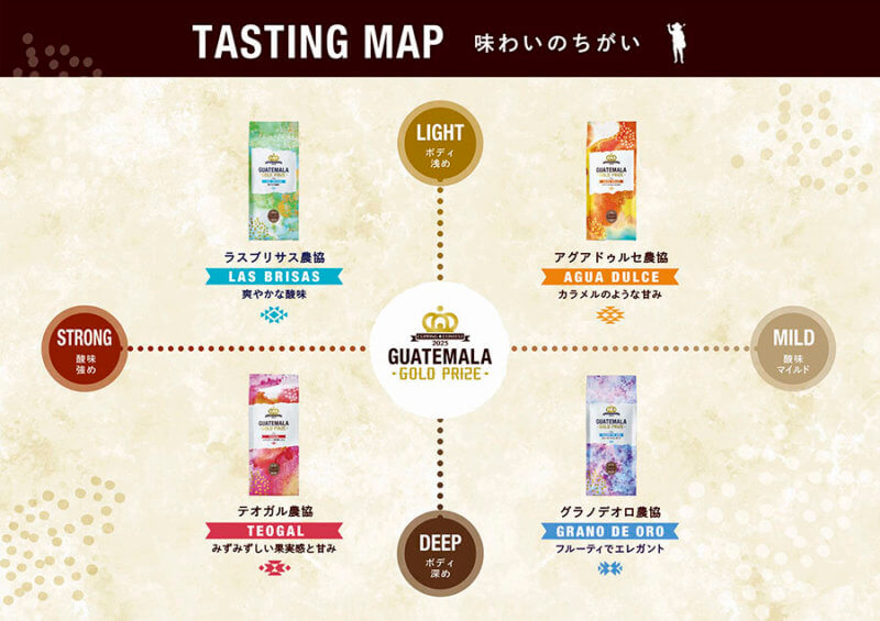 同じグァテマラの豆でも、味や香りは本当に個性豊か。テイスティングワードや味わいを表にまとめてみました。