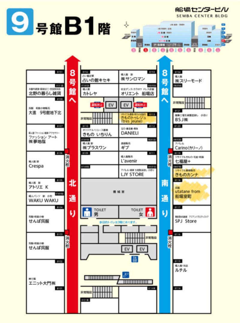 船場センタービルは、地下街から地上まで着物や生地の宝庫。